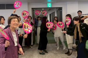松島パスト会長作成の豪華うちわを振って