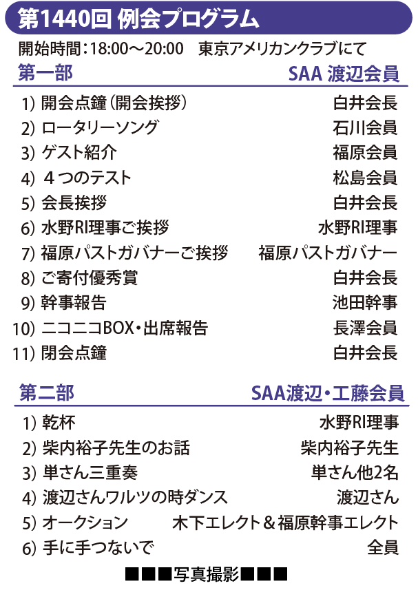 東京アメリカンクラブにて1440回クリスマス例会が開催されました。