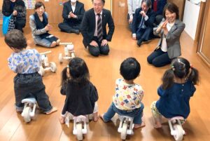 当日は贈呈式をした後に、入所しているお子さんたちに早速乗って遊んでもらったり、